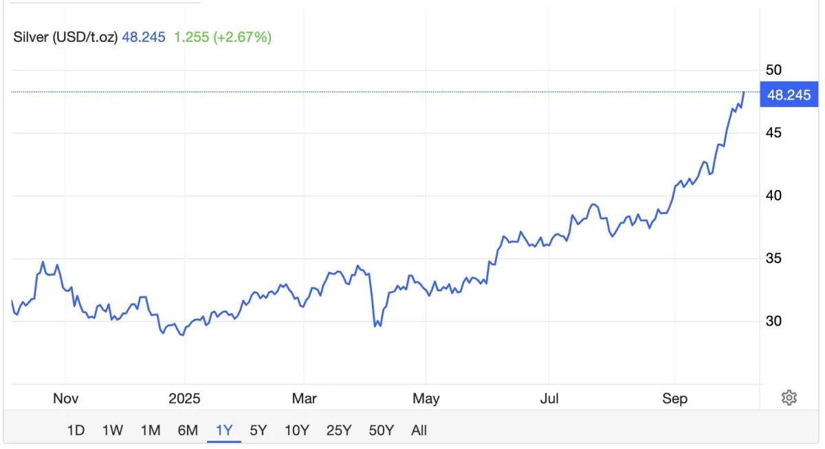 Lower Interest Rates: Falling interest rates causes the dollar to weaken compared to other currencies. Since the US has a 1-Trillion per year trade deficit, this causes inflation and raises the price of Gold and Silver.