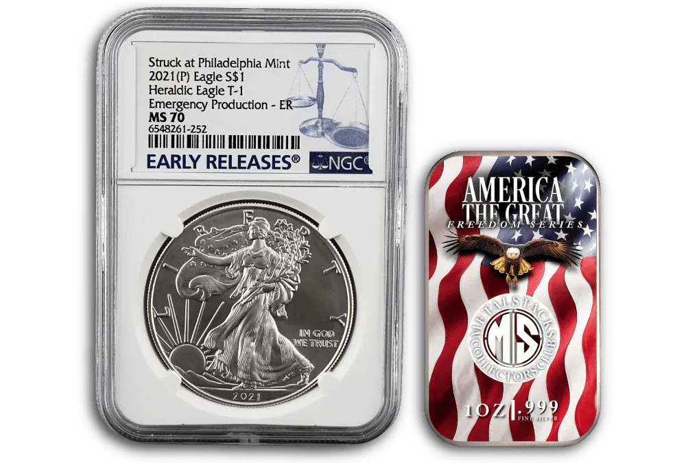 OPTIONAL: Our Club carefully selects a unique 1 Oz MS-70 silver coin each month, auto-shipped to you. Some coins are virtually unavailable anywhere else.